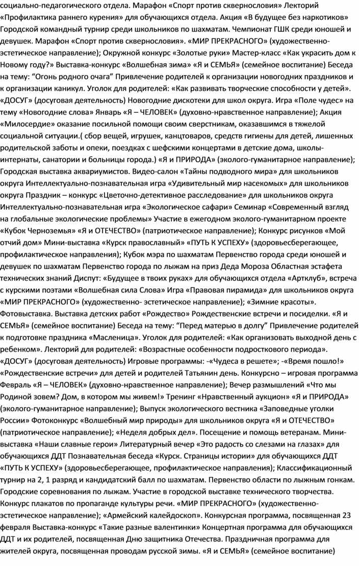 • «ДОСУГ» (досуговая деятельность)