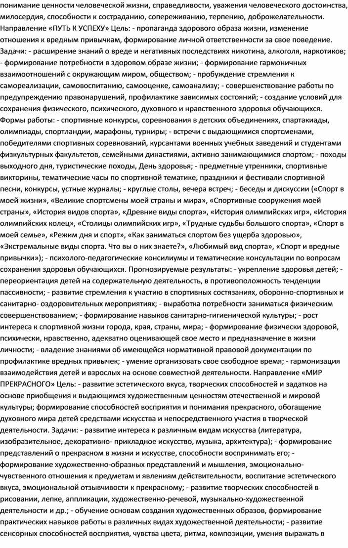 • «ПУТЬ К УСПЕХУ» (здоровьесберегающее, профилактическое направления);