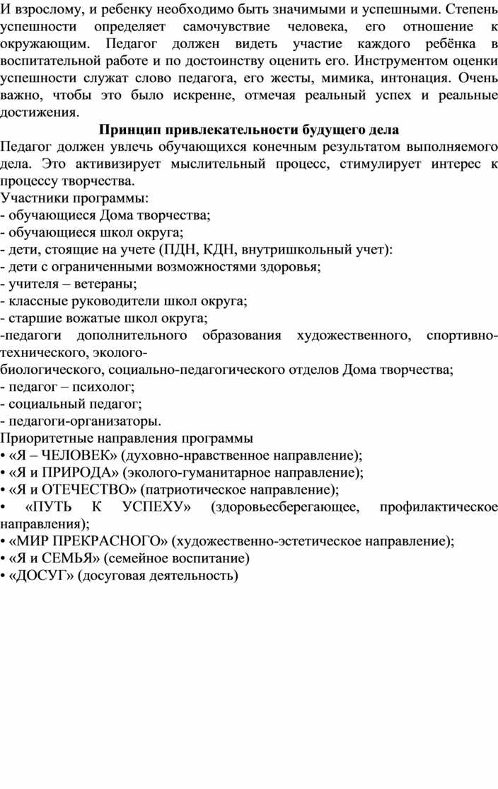 И взрослому, и ребенку необходимо быть значимыми и успешными. Степень успешности определяет самочувствие человека, его отношение к окружающим. Педагог должен видеть участие каждого ребёнка в воспитательной работе и по достоинству оценить его. Инструментом оценки успешности служат слово педагога, его жесты, мимика, интонация. Очень важно, чтобы это было искренне, отмечая реальный успех и реальные достижения.