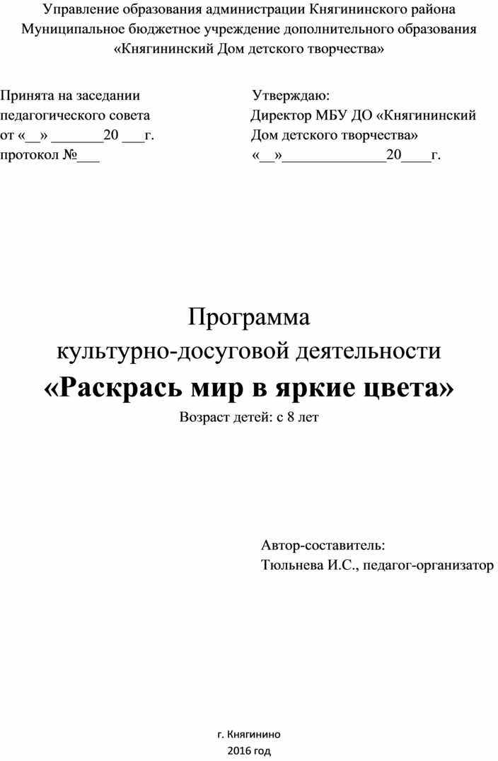 педагогического совета Директор МБУ ДО «Княгининский