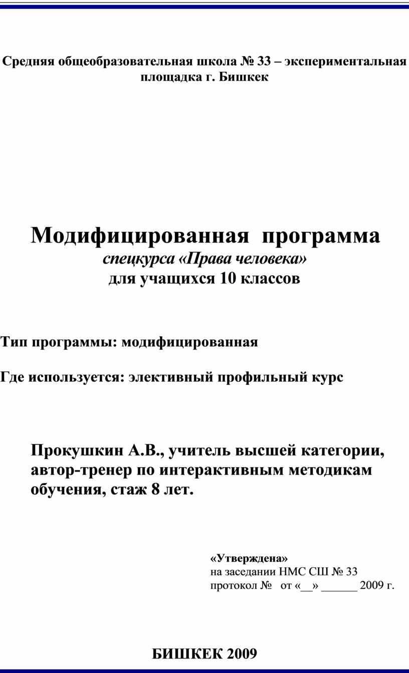 Программа данного спецкурса состоит из двух больших разделов 1 «Права человека» и 2 «Права ребенка»