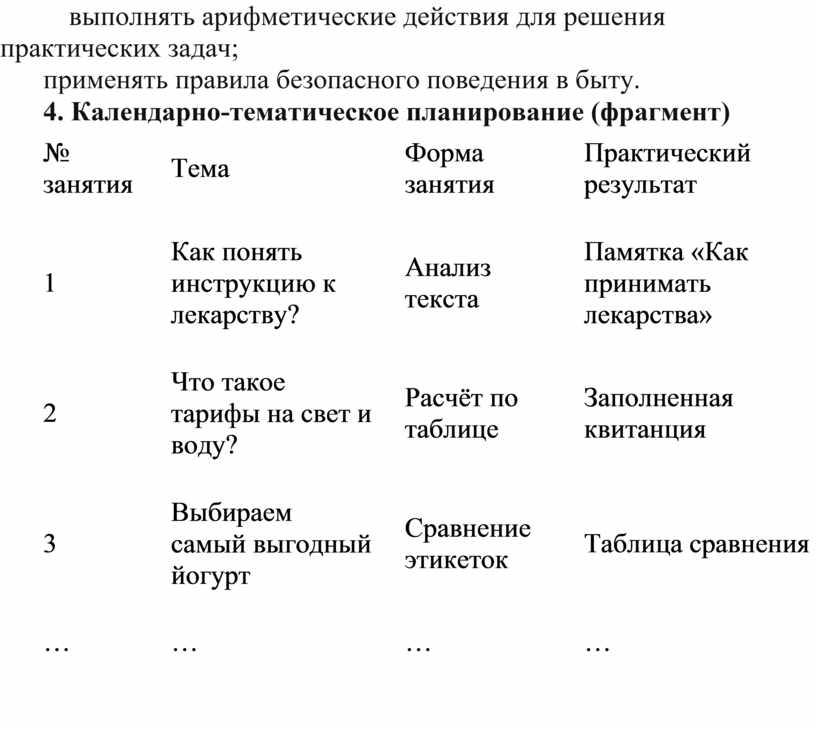 4. Календарно-тематическое планирование (фрагмент)