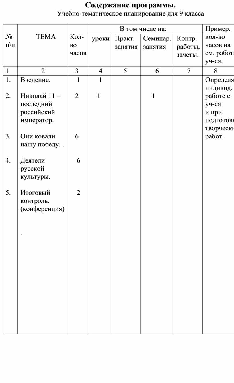 2) способствуют более полному освоению программного материала по истории и подготовке к выпускным экзаменам за курс основной школы.