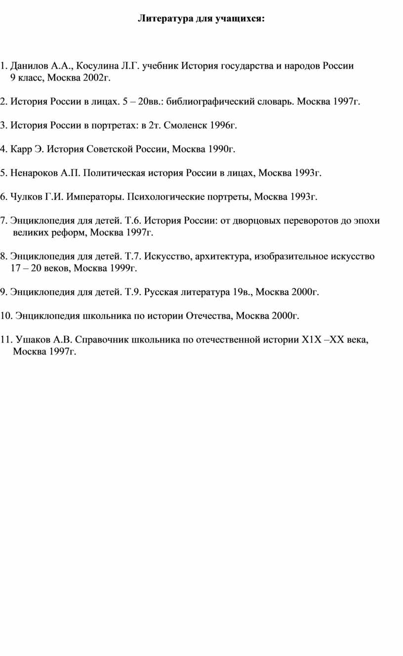 1. Данилов А.А., Косулина Л.Г. учебник История государства и народов России