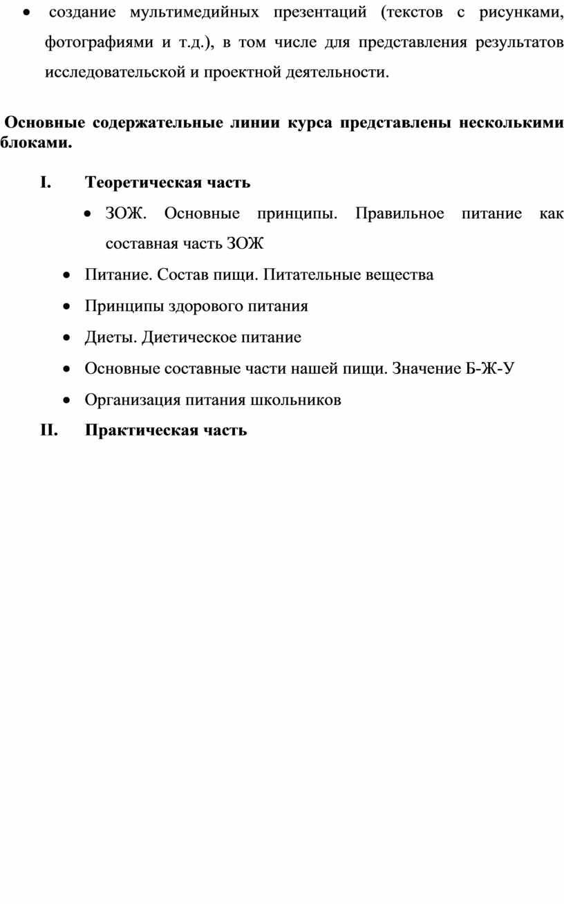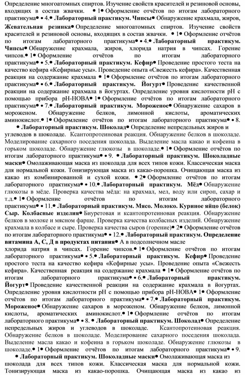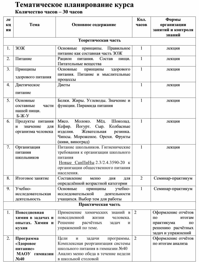 Название курса: «Здоровое питание как часть ЗОЖ. Изучение химического состава пищевых продуктов»