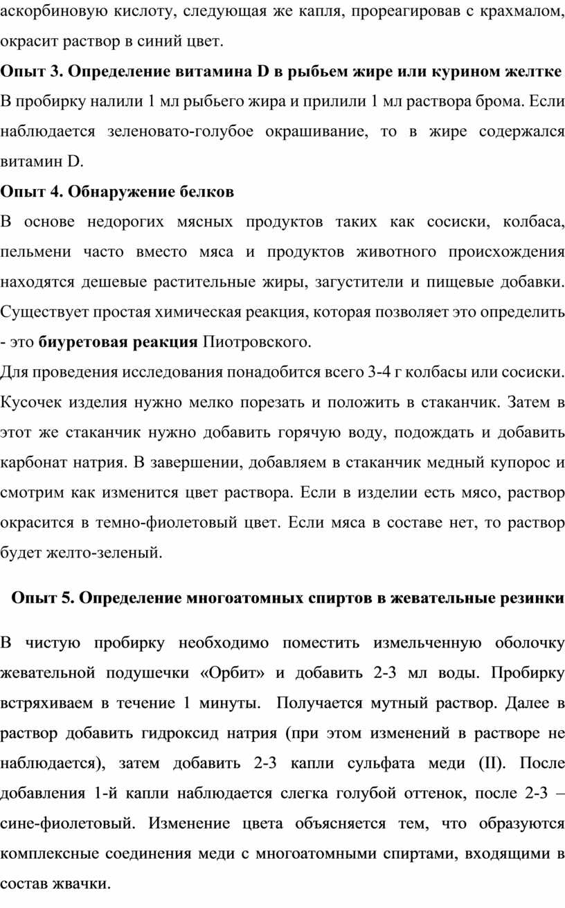 Опыт 3. Определение витамина D в рыбьем жире или курином желтке
