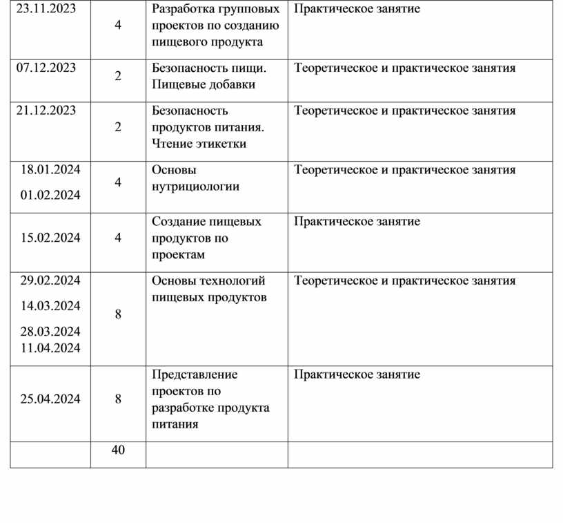 Разработка групповых проектов по созданию пищевого продукта |