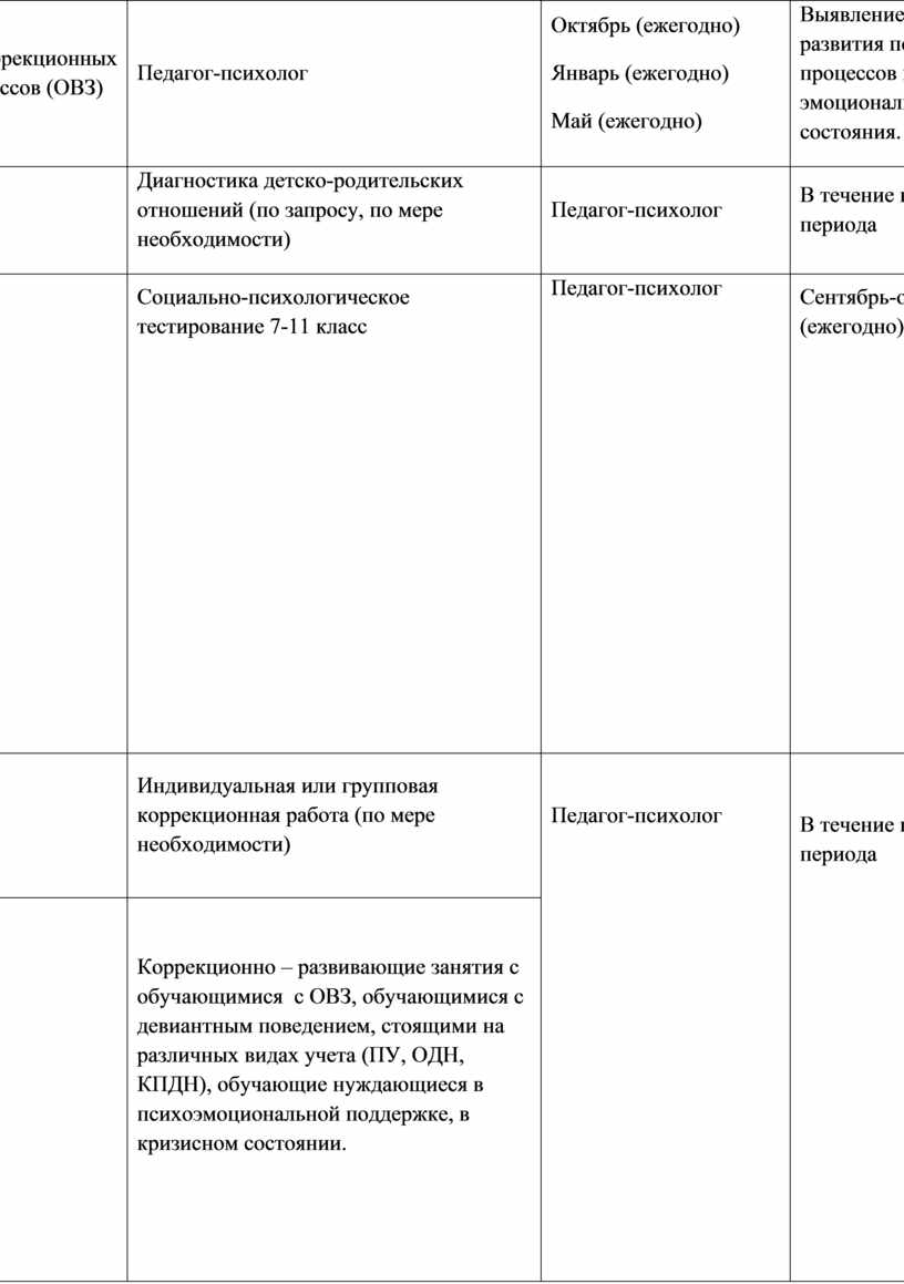 - создание системы психолого-педагогической поддержки учащихся разных возрастных групп; - изучение особенностей психолого-педагогического статуса учащихся, с последующим выявлением детей, нуждающихся в незамедлительной помощи; - обеспечение безопасности ребенка, снятие суицидального риска; - сопровождающая деятельность детей группы риска и их семей |