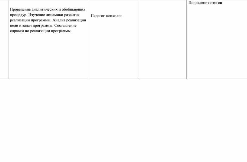 Проведение аналитических и обобщающих процедур. Изучение динамики развития реализации программы. Анализ реализации цели и задач программы. Составление справки по реализации программы.