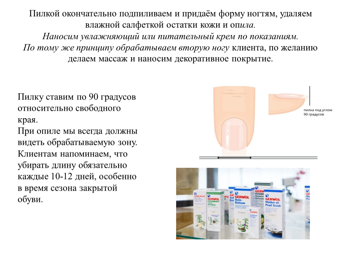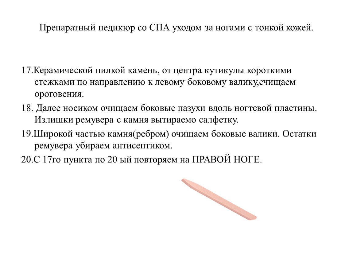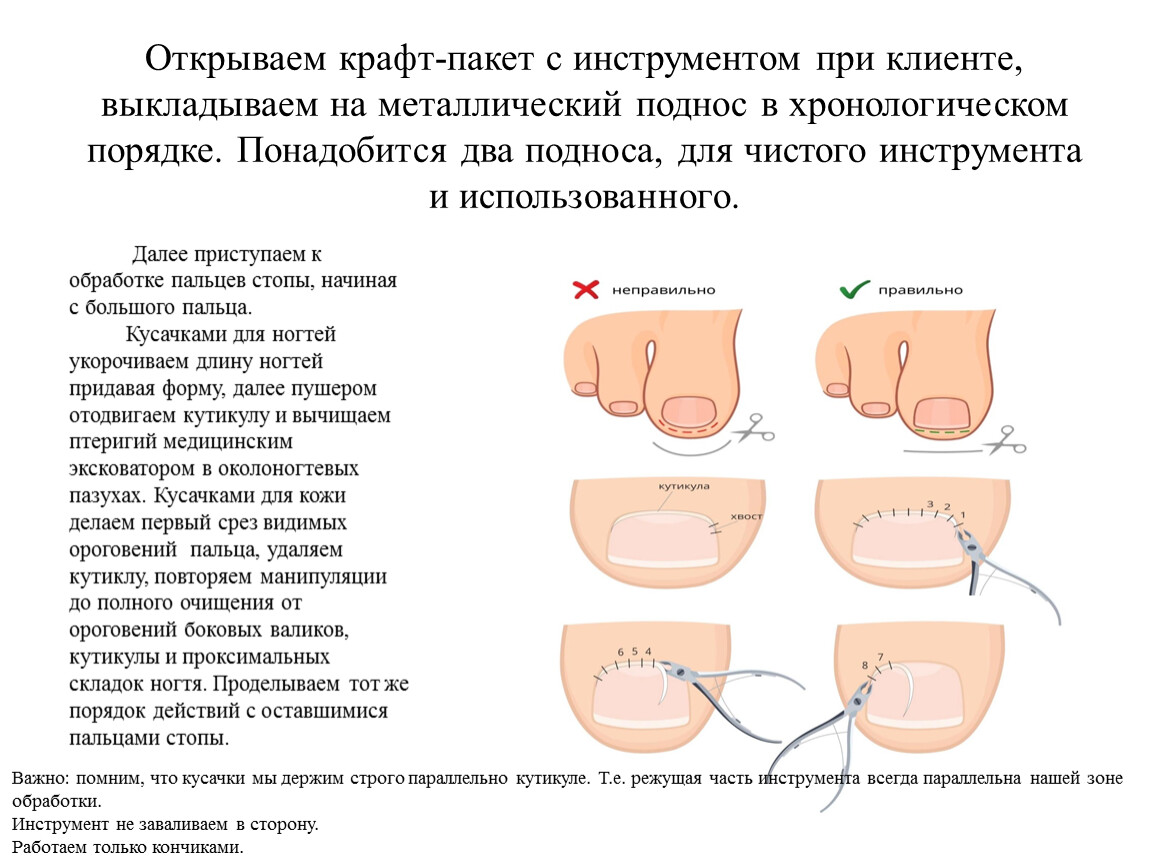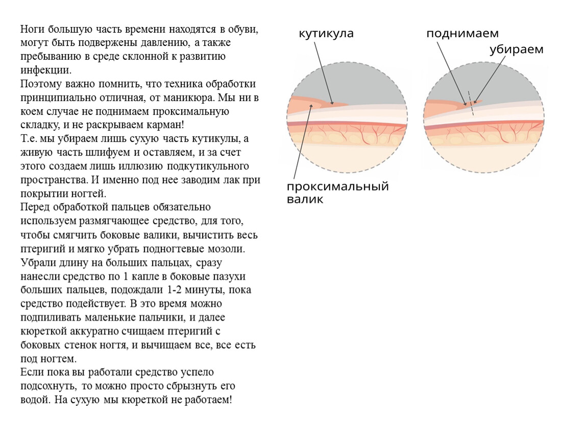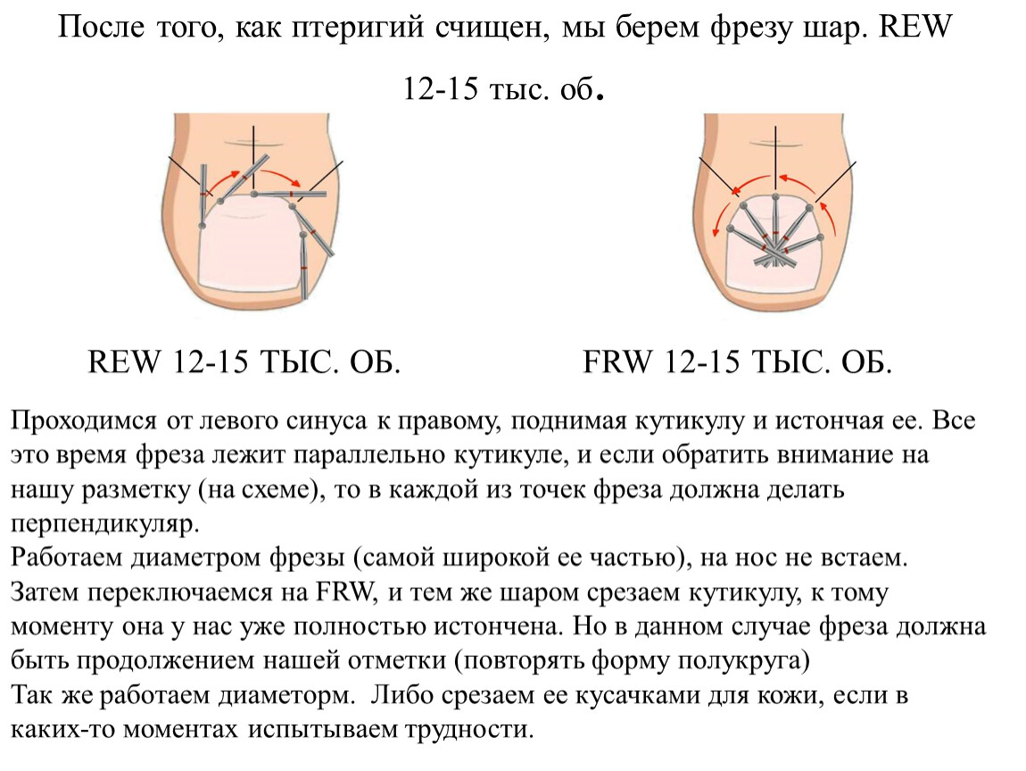 2. Удаляет птеригий (тонкий слой кутикулы, прирастающий непосредственно к ногтевой пластине и растущий вместе с ногтем).