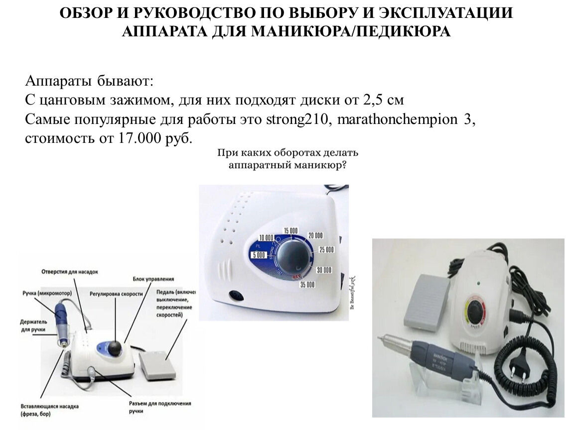 ОБЗОР И РУКОВОДСТВО ПО ВЫБОРУ И ЭКСПЛУАТАЦИИ АППАРАТА ДЛЯ МАНИКЮРА/ПЕДИКЮРА