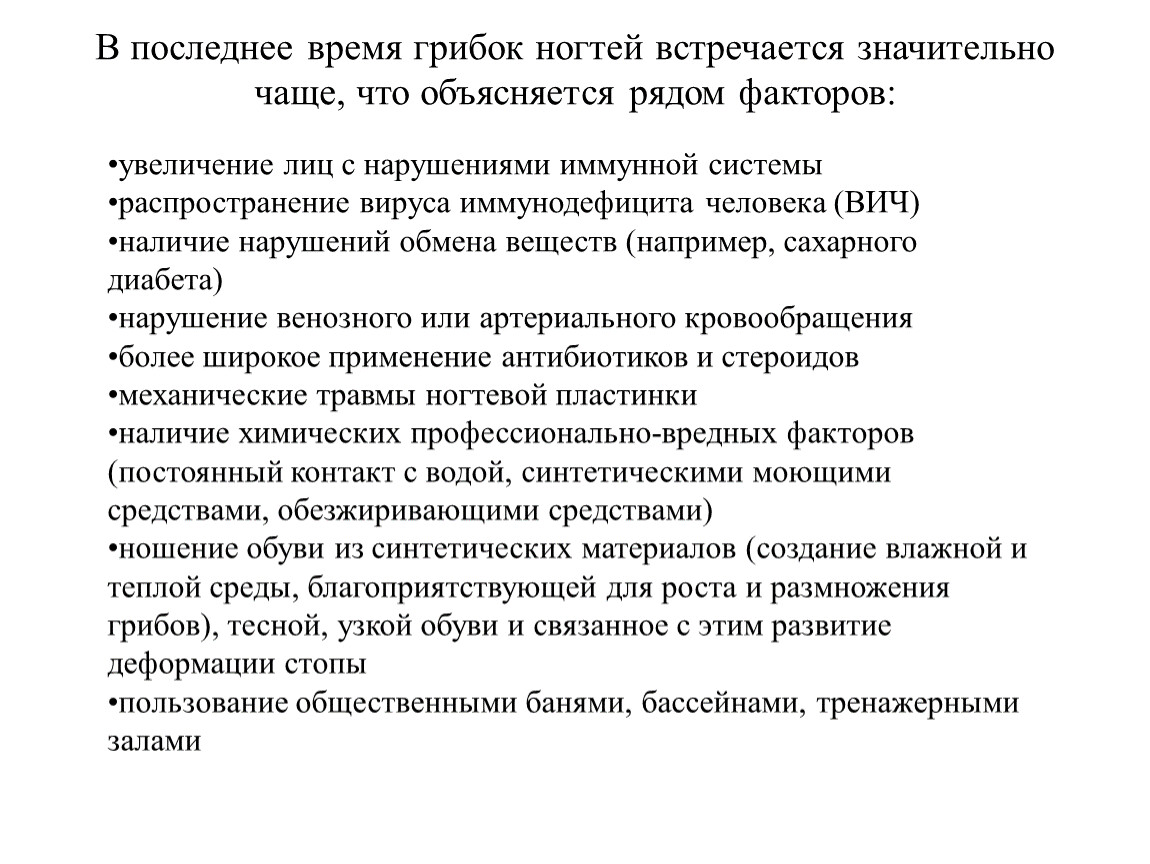 В последнее время грибок ногтей встречается значительно чаще, что объясняется рядом факторов: