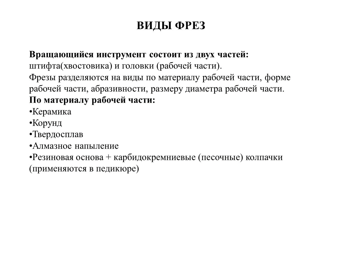 ВИДЫ ФРЕЗ