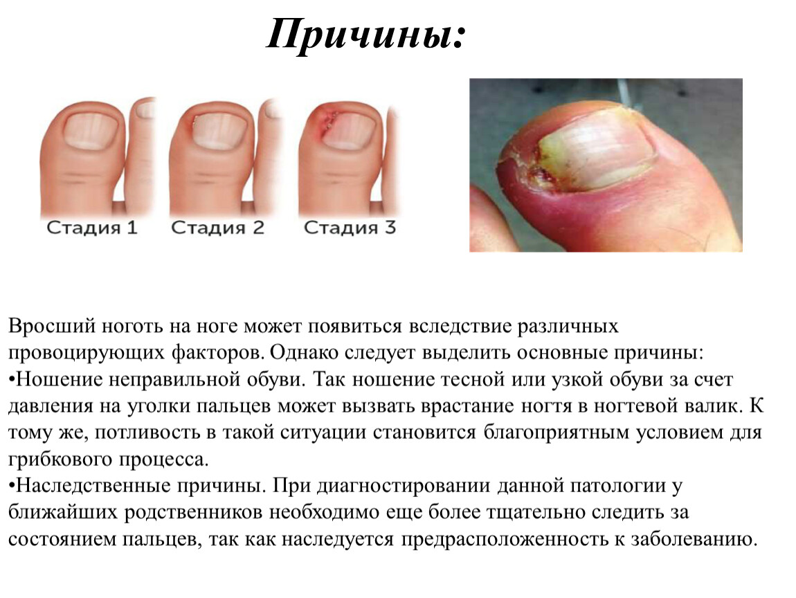 ношение обуви из синтетических материалов (создание влажной и теплой среды, благоприятствующей для роста и размножения грибов), тесной, узкой обуви и связанное с этим развитие деформации стопы