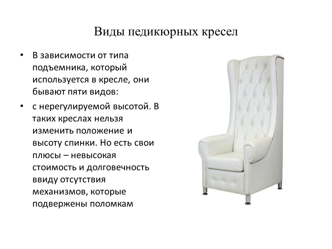 Виды педикюрных кресел