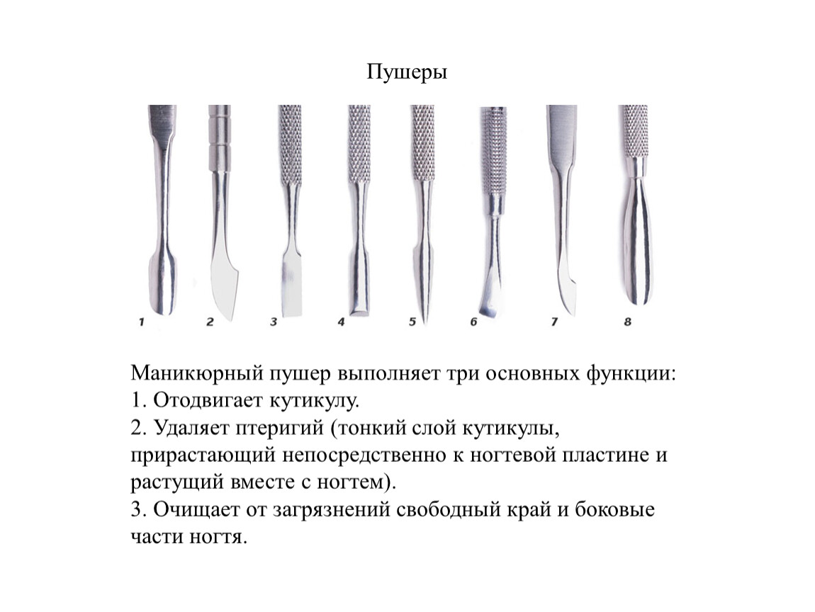 Маникюрный пушер выполняет три основных функции:
