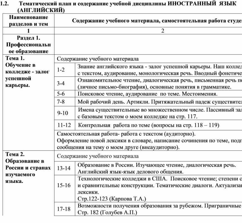 2.2. Тематический план и содержание учебной дисциплины ИНОСТРАННЫЙ ЯЗЫК (АНГЛИЙСКИЙ)