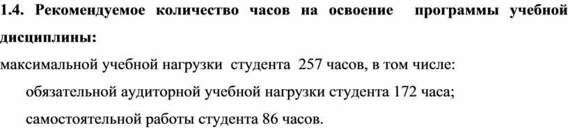 1.4. Рекомендуемое количество часов на освоение программы учебной дисциплины: