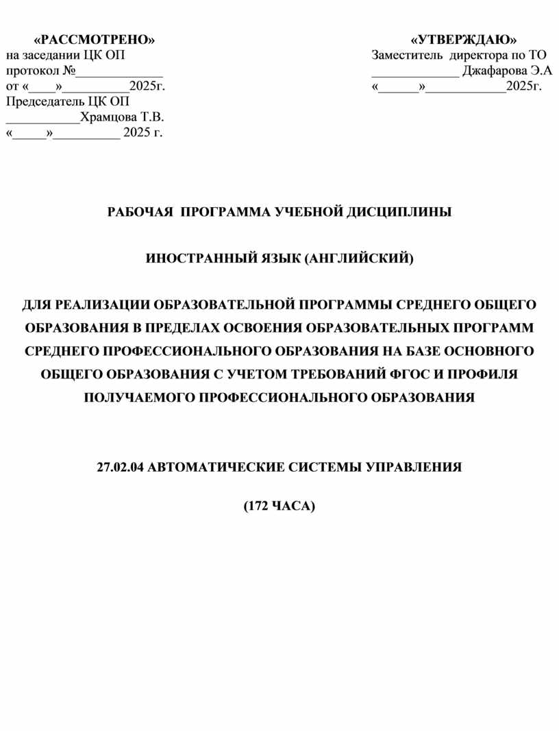 «РАССМОТРЕНО» на заседании ЦК ОП протокол №_____________ от «____»__________2025г. Председатель ЦК ОП ___________Храмцова Т.В. «_____»__________ 2025 г. |