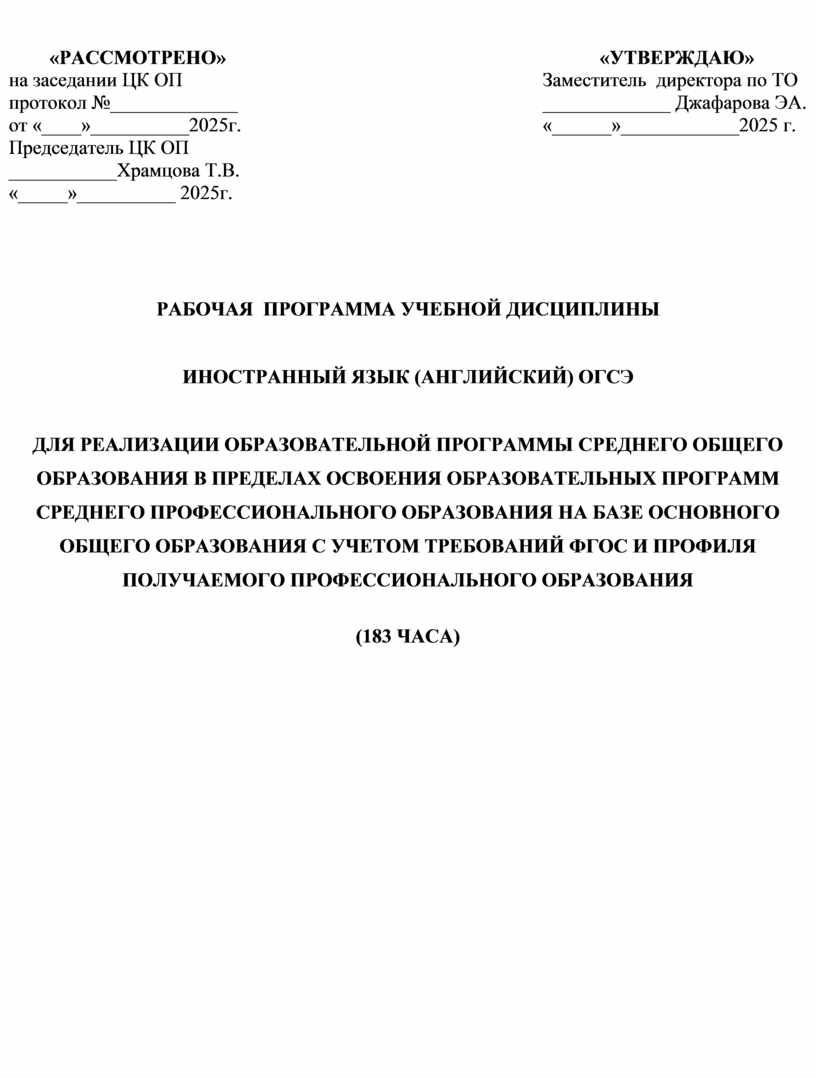 «РАССМОТРЕНО» на заседании ЦК ОП протокол №_____________ от «____»__________2025г. Председатель ЦК ОП ___________Храмцова Т.В. «_____»__________ 2025г. |