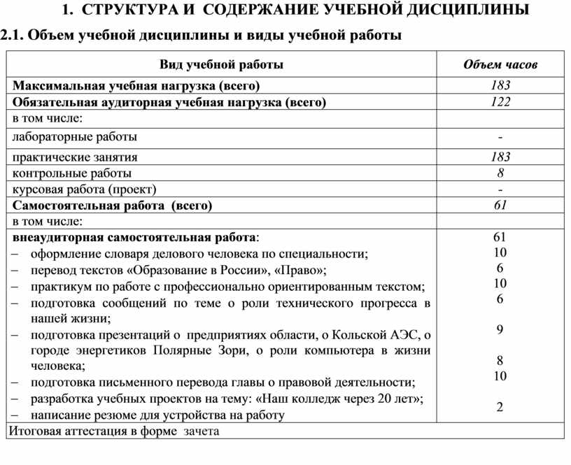 2. СТРУКТУРА И СОДЕРЖАНИЕ УЧЕБНОЙ ДИСЦИПЛИНЫ