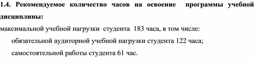 1.4. Рекомендуемое количество часов на освоение программы учебной дисциплины: