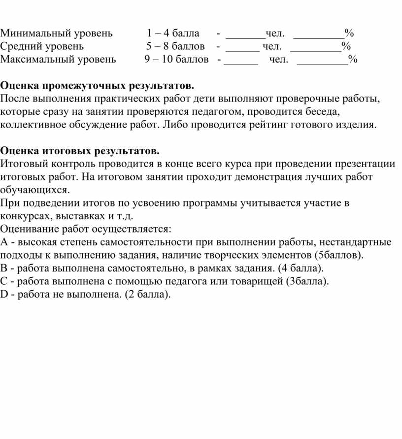 Формы подведения итогов программы: организация и проведение выставок лучших работ, представление собственных моделей.