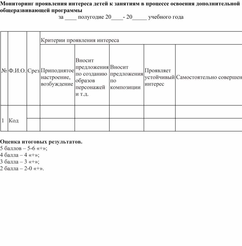 Мониторинг проявления интереса детей к занятиям в процессе освоения дополнительной общеразвивающей программы