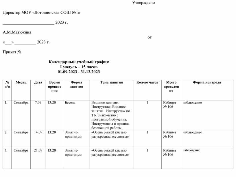 УТВЕРЖДЕНО: Директор школы _______А.М. Матюкина Приказ № ___ от «__» ___ 20__ г. М.П. |
