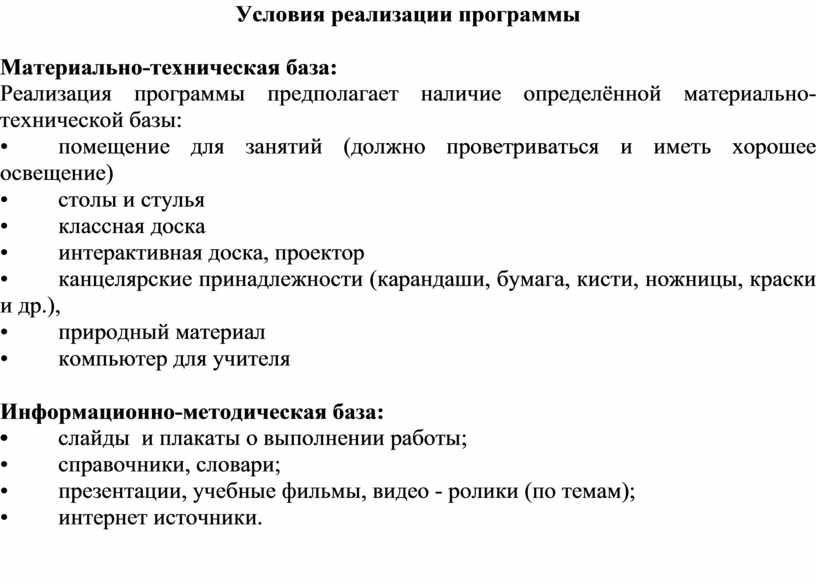 Реализация программы предполагает наличие определённой материально-технической базы: