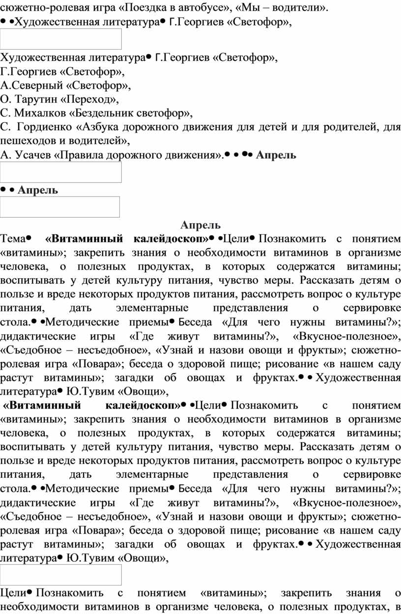 Ю.Тувим «Овощи», И. Батова «Что такое витамины?», А. Монвиж-Монтвид «Где живут витамины?» |