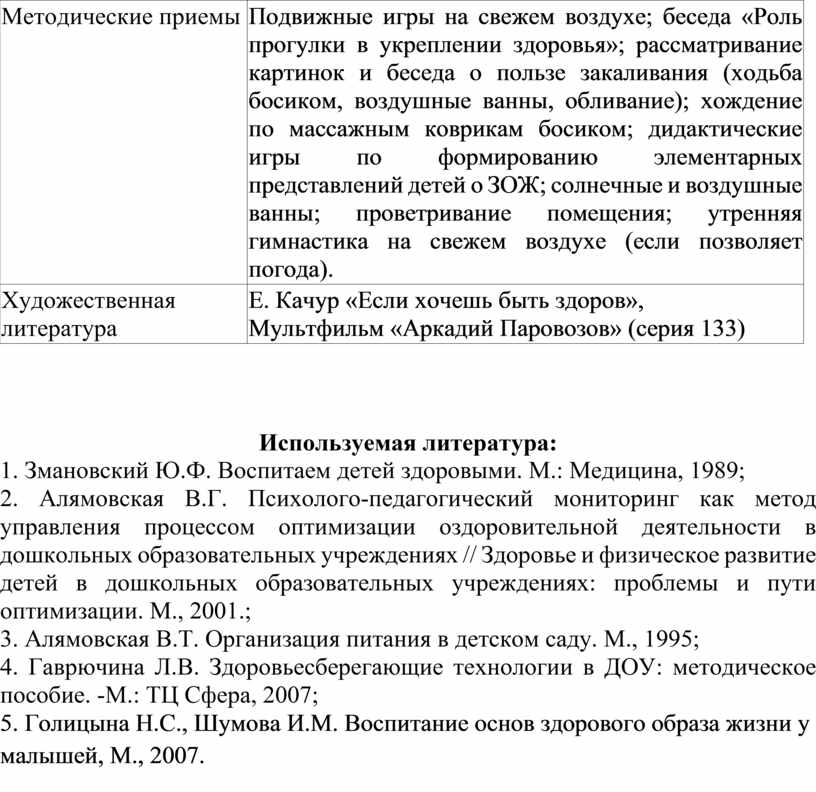 1. Змановский Ю.Ф. Воспитаем детей здоровыми. М.: Медицина, 1989;