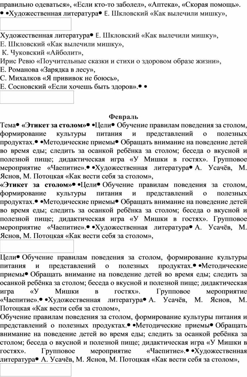 А. Усачёв, М. Яснов, М. Потоцкая «Как вести себя за столом», Е. Ульева «Энциклопедия хорошего поведения», Е. Усачёва «Единороги. Поведение за столом», Е. Запесочная «Правила вежливости», Ю. Иванова «Дина и Дракош. Секреты воспитания» |