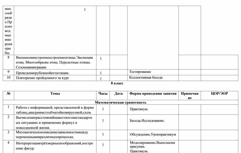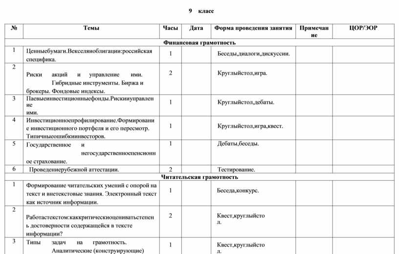 - 8 часов на модули «читательская грамотность», «математическая грамотность», «финансовая грамотность»;