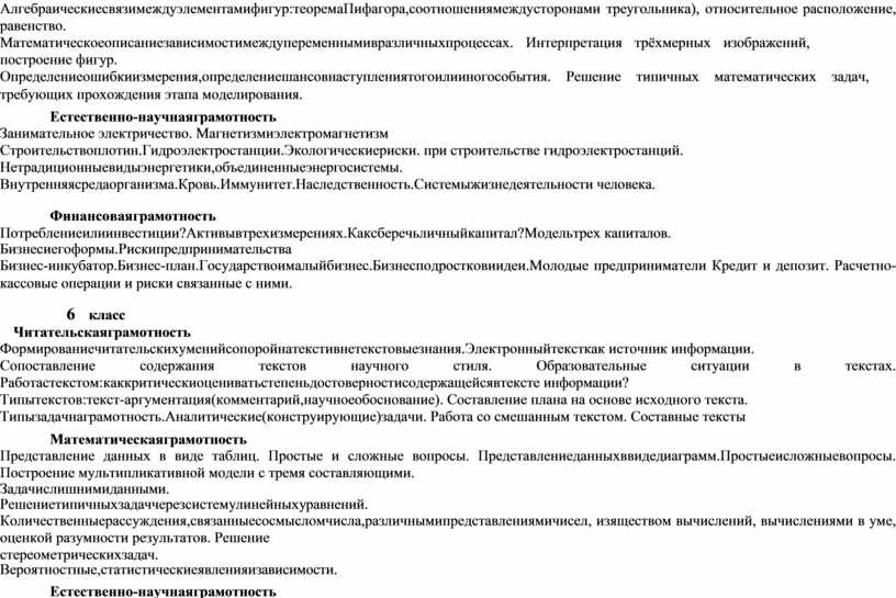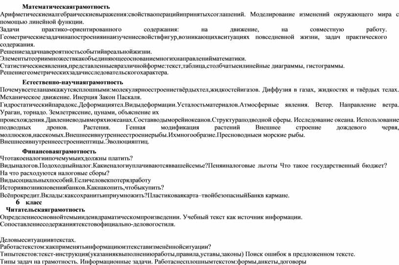 В 6 классе формируется умение применять знания о математических, естественнонаучных, финансовых и общественных явлениях для решения поставленных перед учеником практических задач.