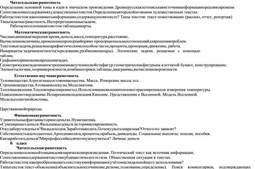 Программа предполагает поэтапное развитие различных умений, составляющих основу функциональной грамотности.