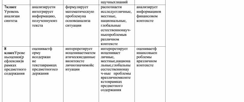 В 7 классе обучающиеся учатся анализировать и обобщать (интегрировать) информацию различного предметного содержания в разном контексте. Проблемы, которые ученикунеобходимо проанализировать и синтезировать в единую картину могут иметь как личный, местный, так и национальный и глобальный аспекты. Школьники должны овладеть универсальными способами анализа информации иее интеграции в единое целое.