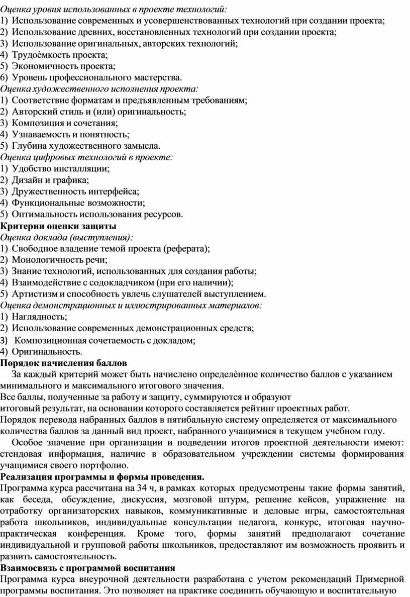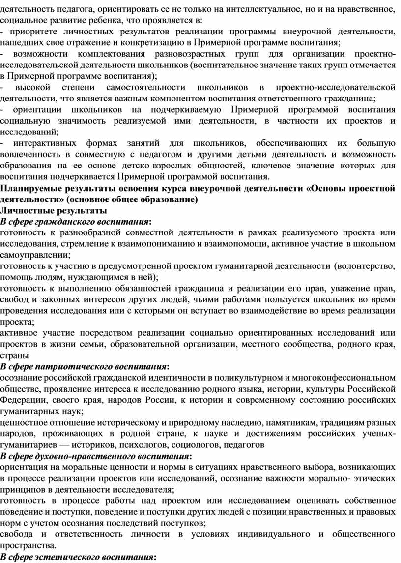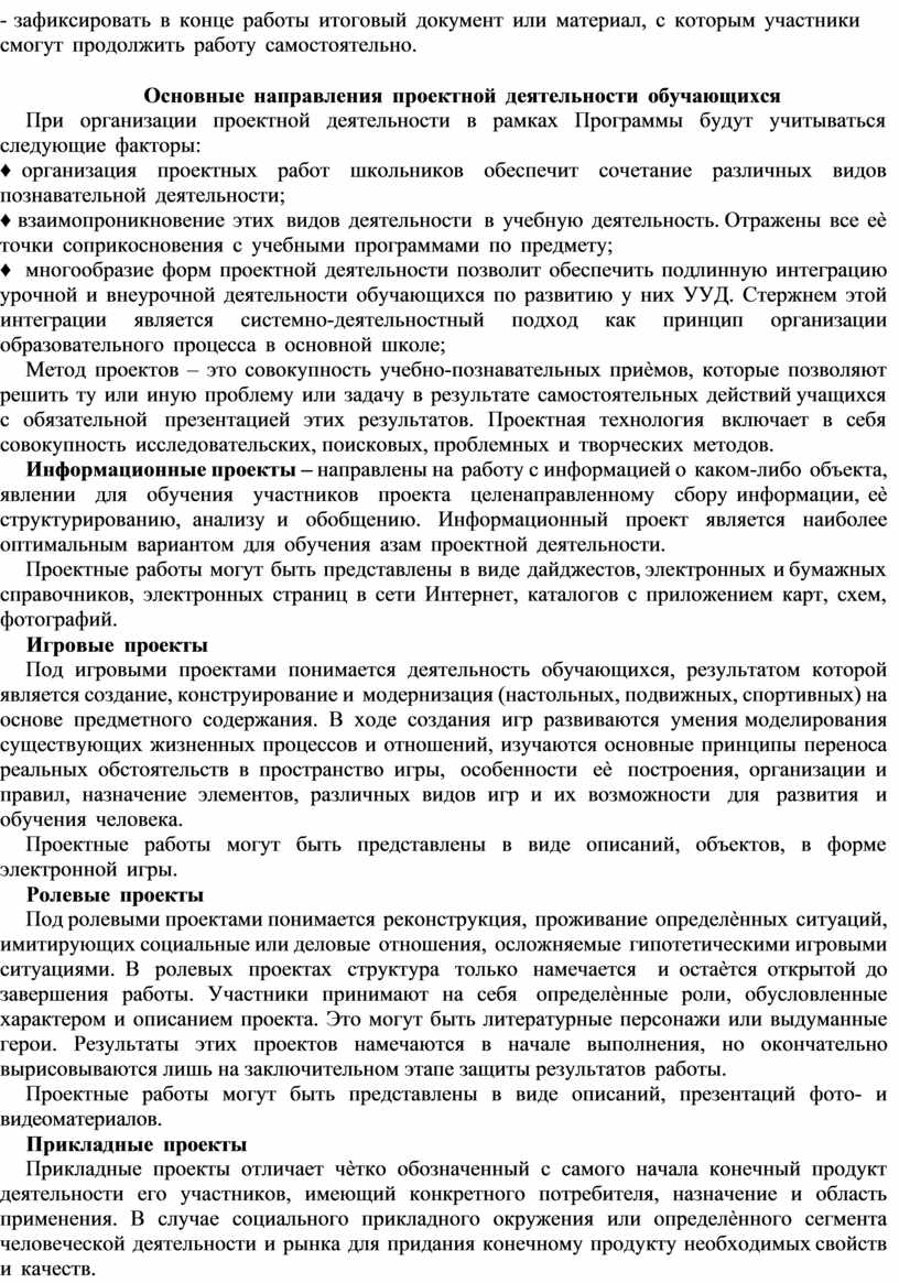 Программа отражает особенности проектной деятельности обучающихся в реализации проектов.