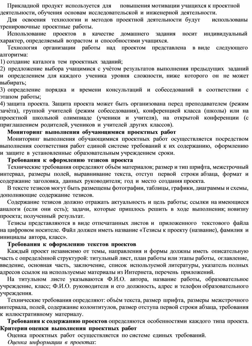 ♦ проект должен быть выполним и соответствовать возрасту, способностям и возможностям обучающегося;