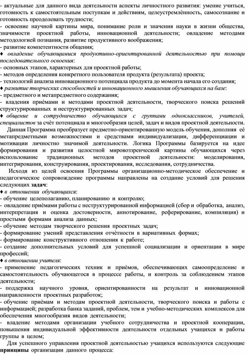 Цели, задачи и принципы организации проектной деятельности.