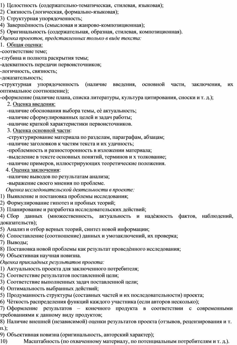 ♦ наличие простой и обоснованной критериальной системы оценки итогового результата работы по проекту и индивидуального вклада каждого ученика;