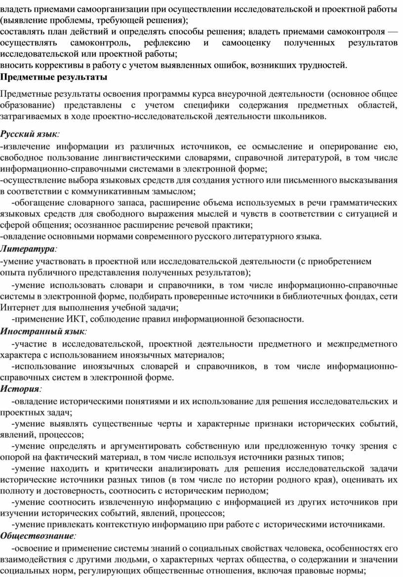 - навык работы со специализированными компьютерными программами, техническими приспособлениями, библиотечными фондами и иными ресурсами, с которыми может быть связана проектно-исследовательская деятельность школьника.