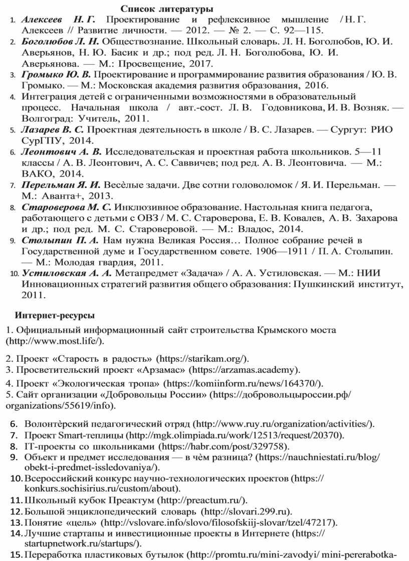 5. Лазарев В. С. Проектная деятельность в школе / В. С. Лазарев. — Сургут: РИО СурГПУ, 2014.