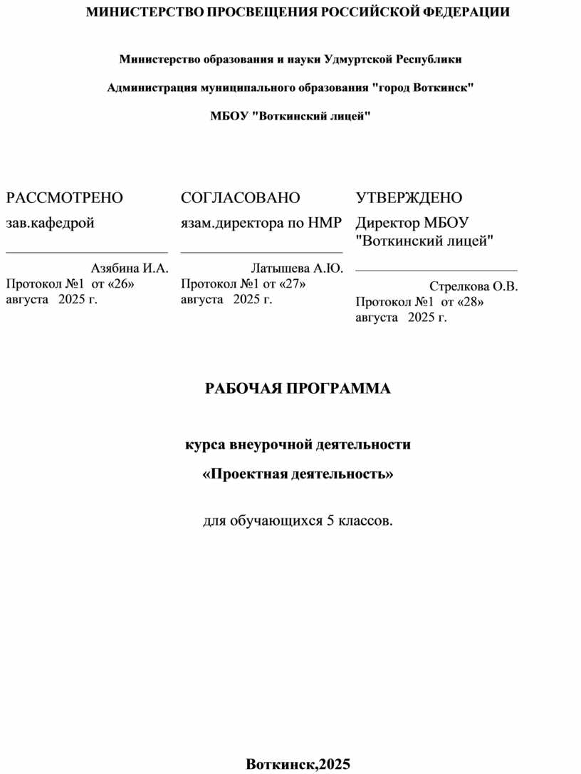 УТВЕРЖДЕНО Директор МБОУ "Воткинский лицей" ________________________ Стрелкова О.В. Протокол №1 от «28» августа 2025 г.