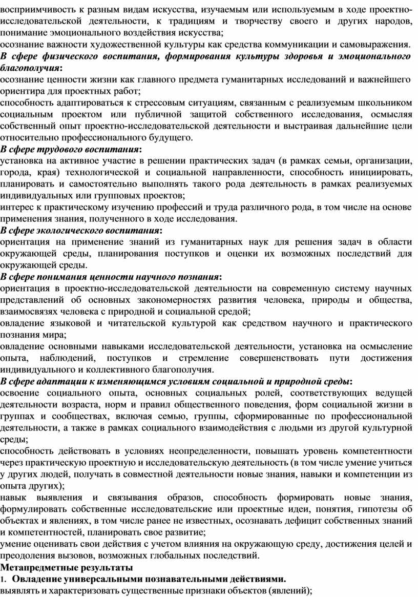 - освоение научной картины мира, понимание роли и значения науки в жизни общества, значимости проектной работы, инновационной деятельности; овладение методами методологией познания, развитие продуктивного воображения;