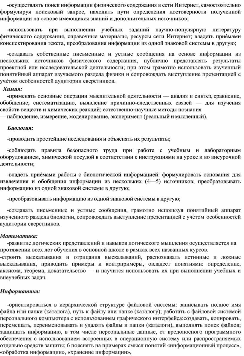 - овладение приѐмами работы с неструктурированной информацией (сбор и обработка, анализ, интерпретация и оценка достоверности, аннотирование, реферирование, компиляция) и простыми формами анализа данных;