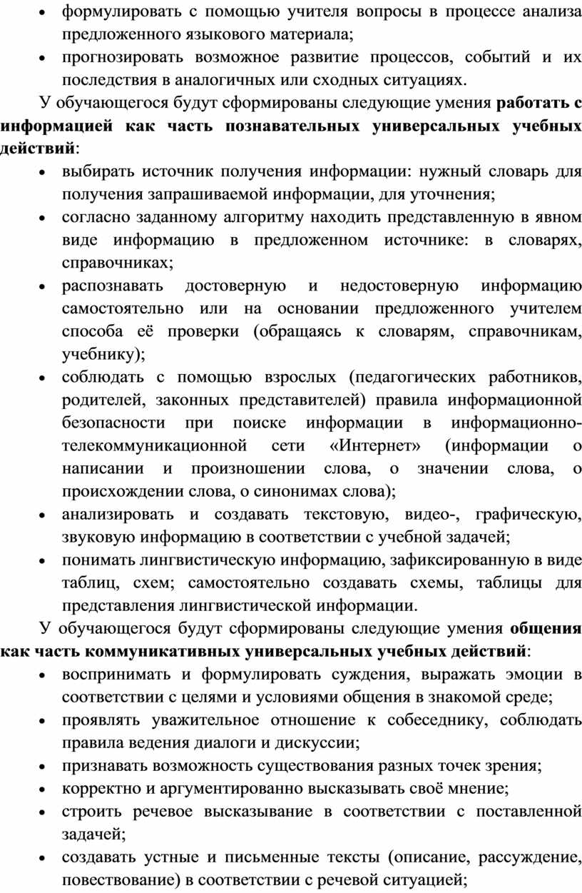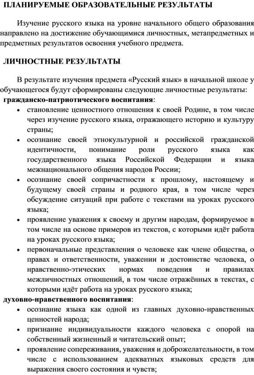 На уровне начального общего образования изучение русского языка имеет особое значение в развитии обучающегося. Приобретённые знания, опыт выполнения предметных и универсальных учебных действий на материале русского языка станут фундаментом обучения на уровне основного общего образования, а также будут востребованы в жизни.