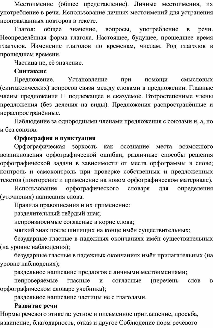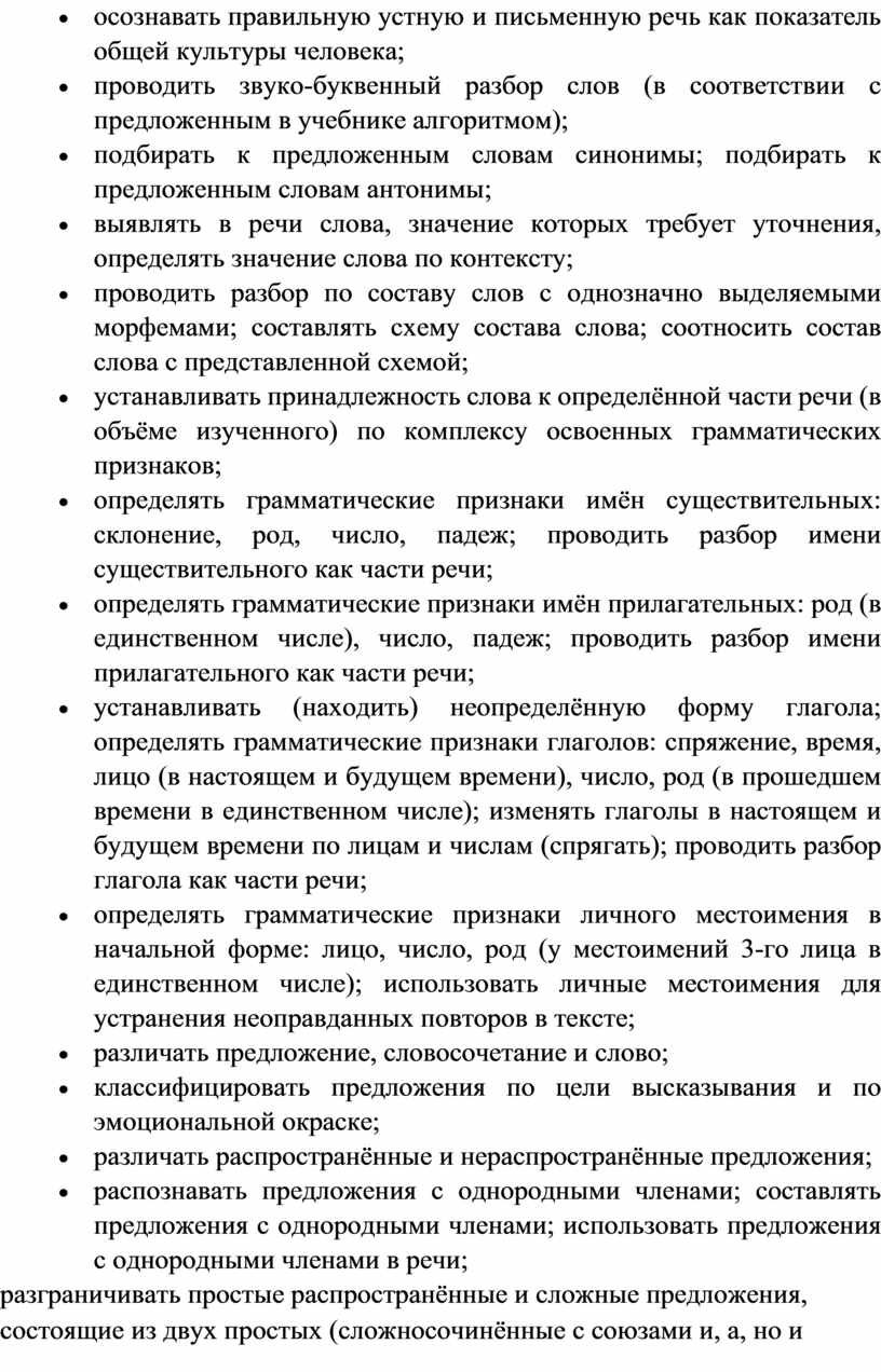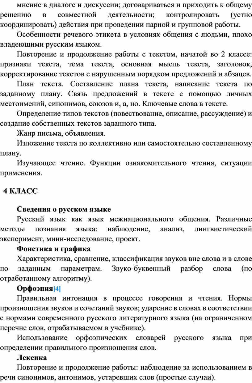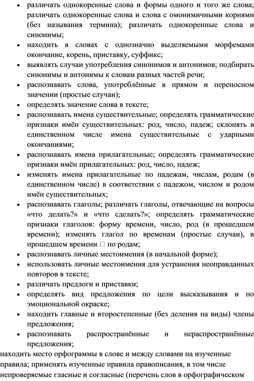3) овладение первоначальными научными представлениями о системе русского языка: фонетика, графика, лексика, морфемика, морфология и синтаксис; об основных единицах языка, их признаках и особенностях употребления в речи; использование в речевой деятельности норм современного русского литературного языка (орфоэпических, лексических, грамматических, орфографических, пунктуационных) и речевого этикета;