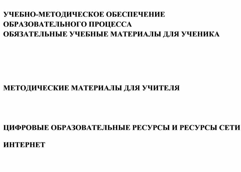 УЧЕБНО-МЕТОДИЧЕСКОЕ ОБЕСПЕЧЕНИЕ ОБРАЗОВАТЕЛЬНОГО ПРОЦЕССА