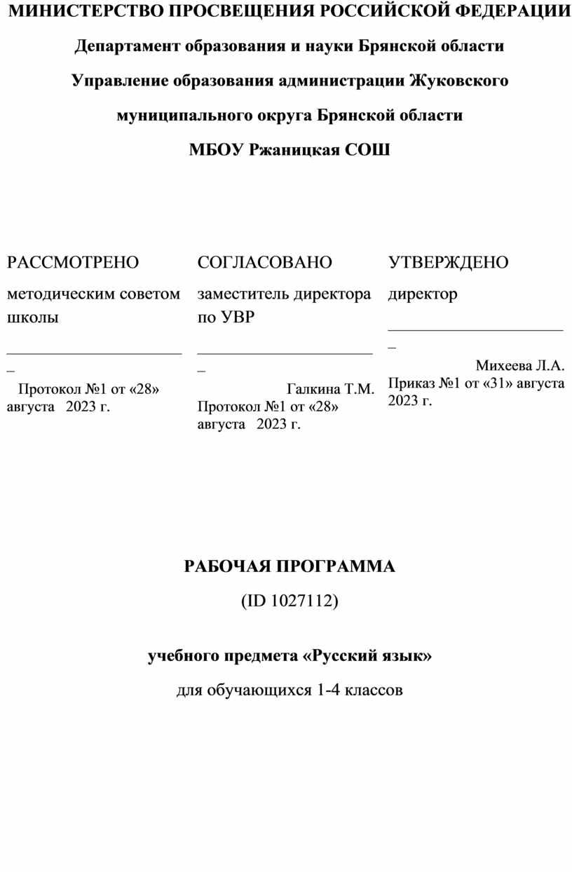 РАССМОТРЕНО методическим советом школы ________________________ Протокол №1 от «28» августа 2023 г.
